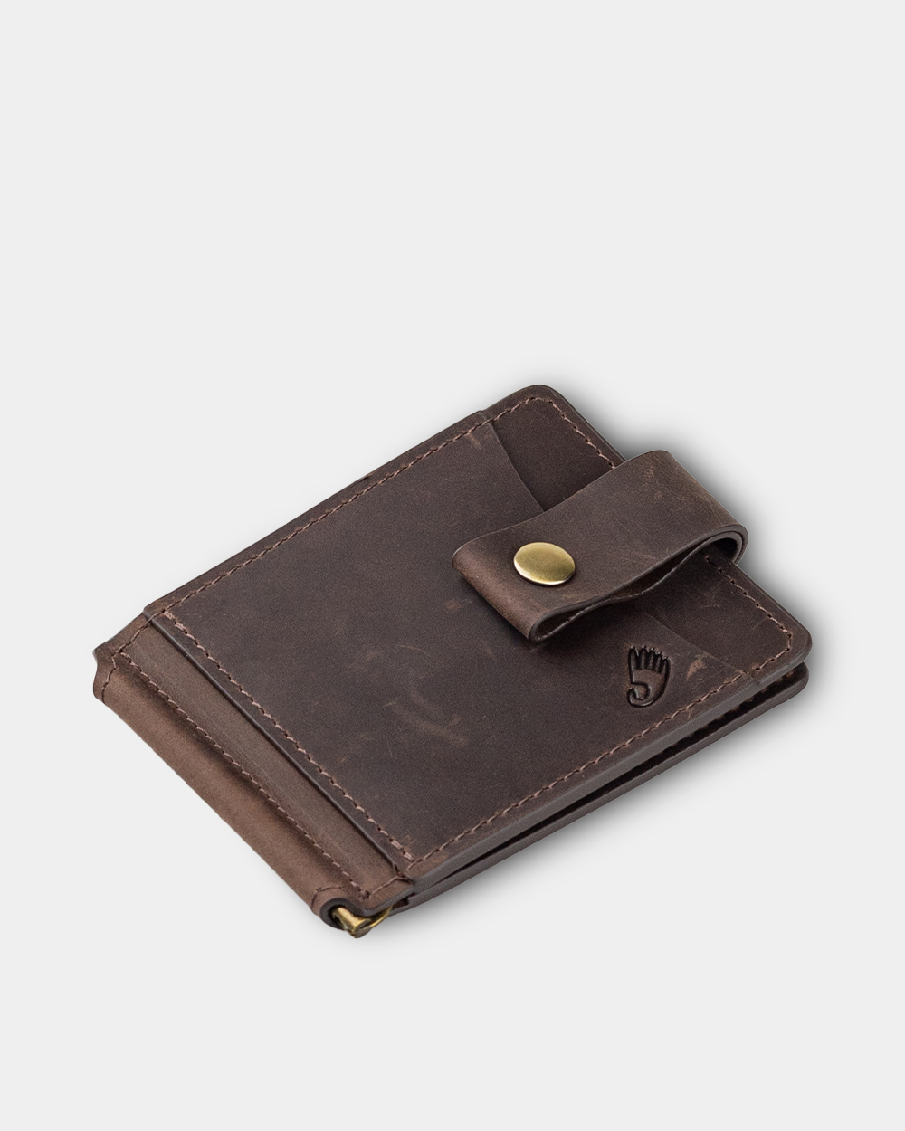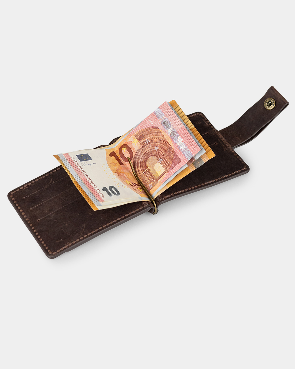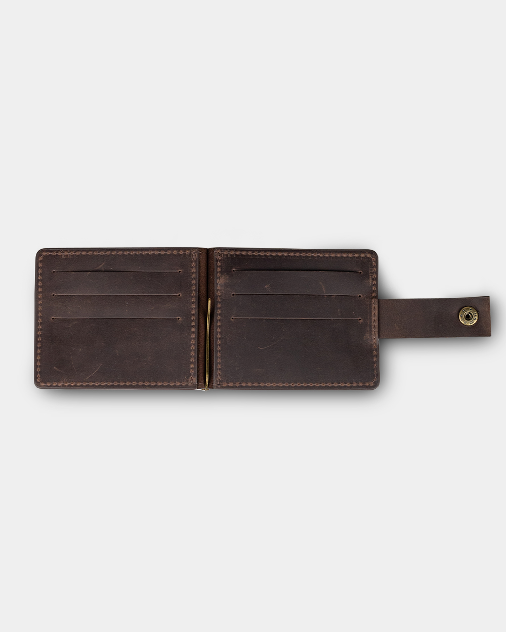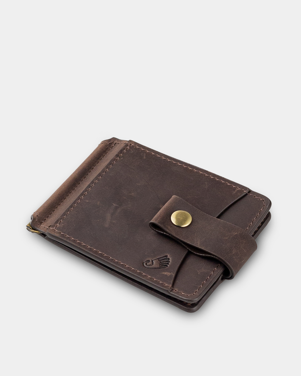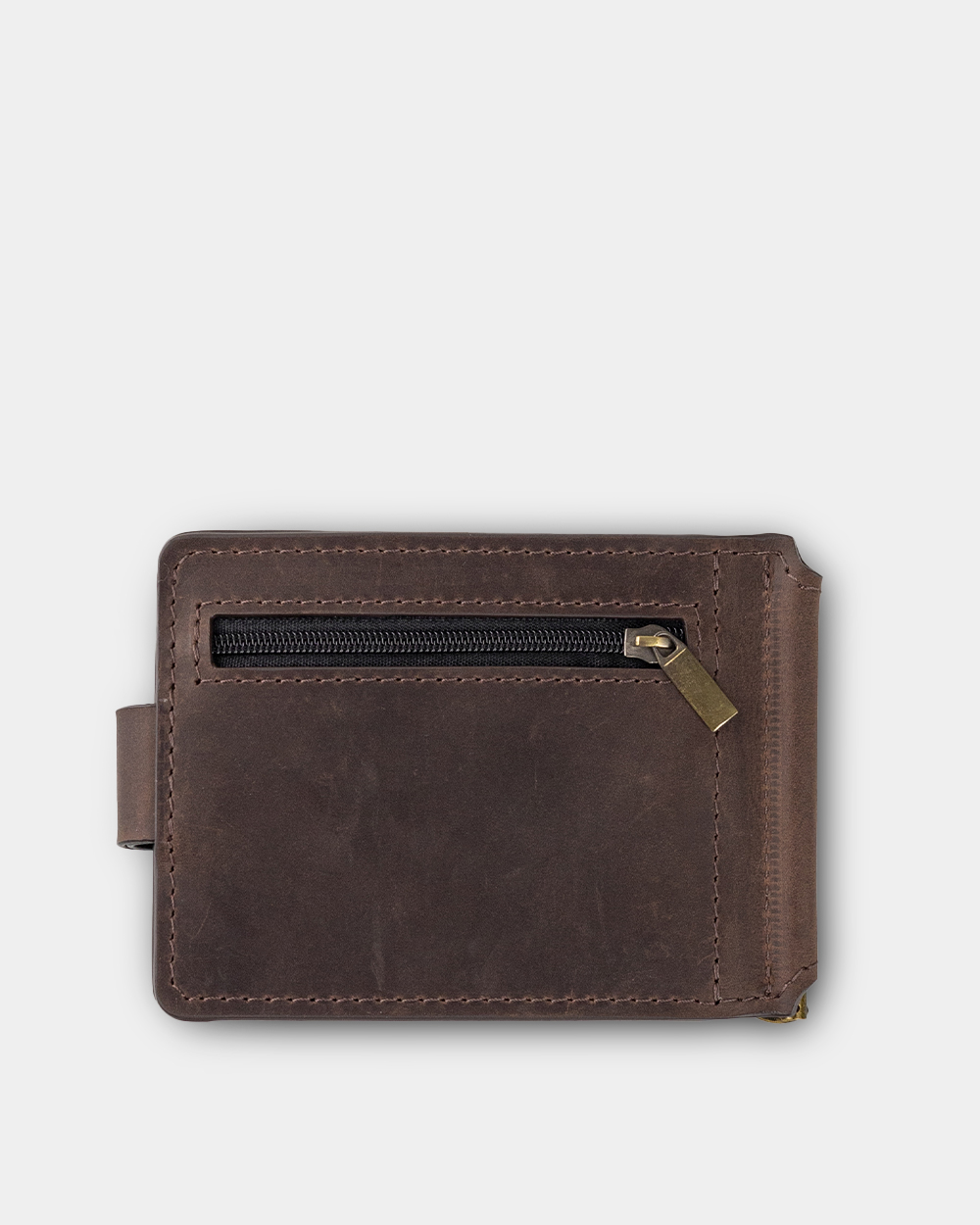 Гаманець з натуральної шкіри Crazy Horse - стильний і зручний варіант на кожен день. Компактний, але продуманий всередині: легко вмістить усе необхідне і не займає багато місця. Всередині є шість відділень для карток та металевий зажим для банкнот. Ззовні на задній частині розташована кишеня на блискавці для дрібниць. Гаманець закривається на кнопку, тож усе надійно фіксується.