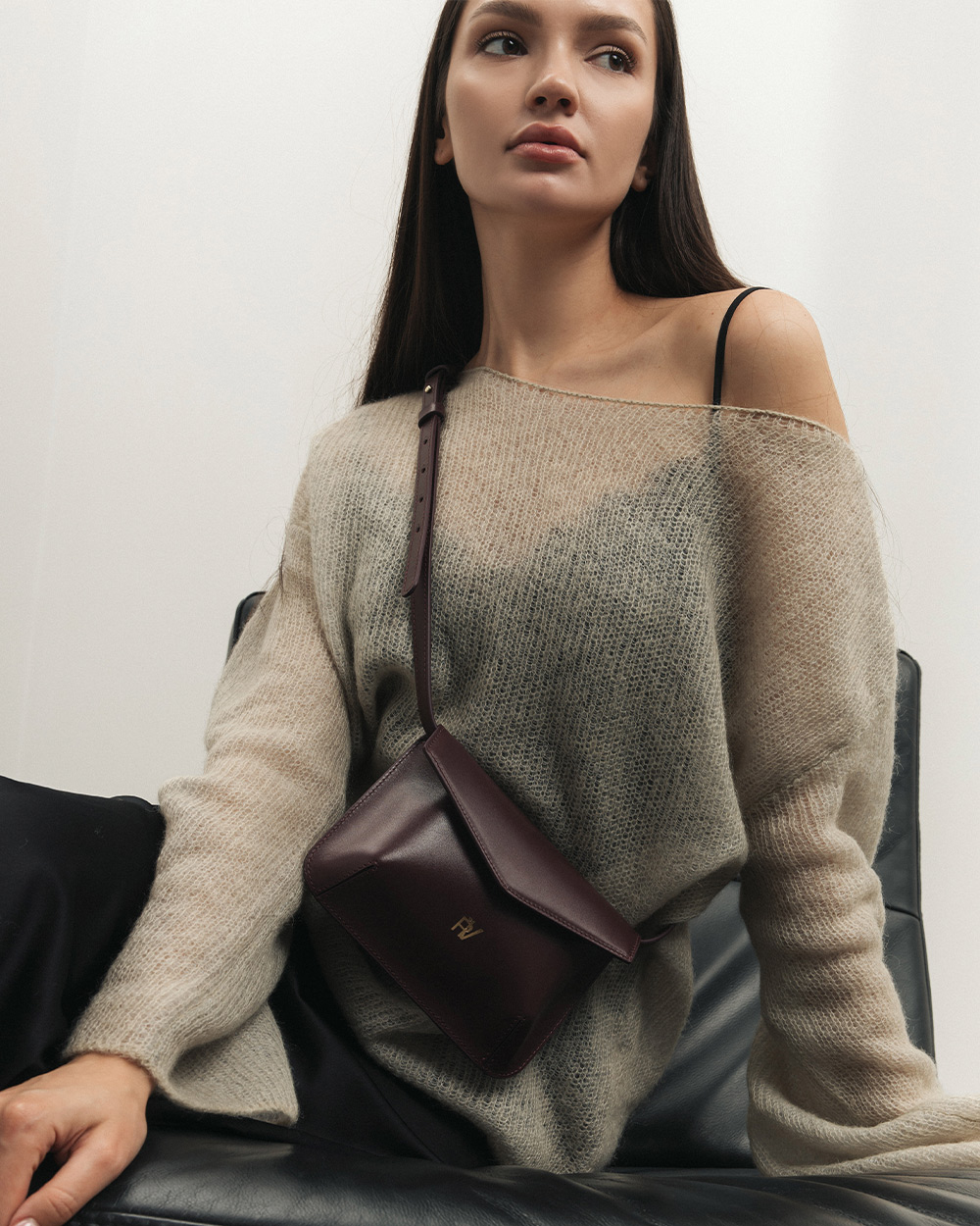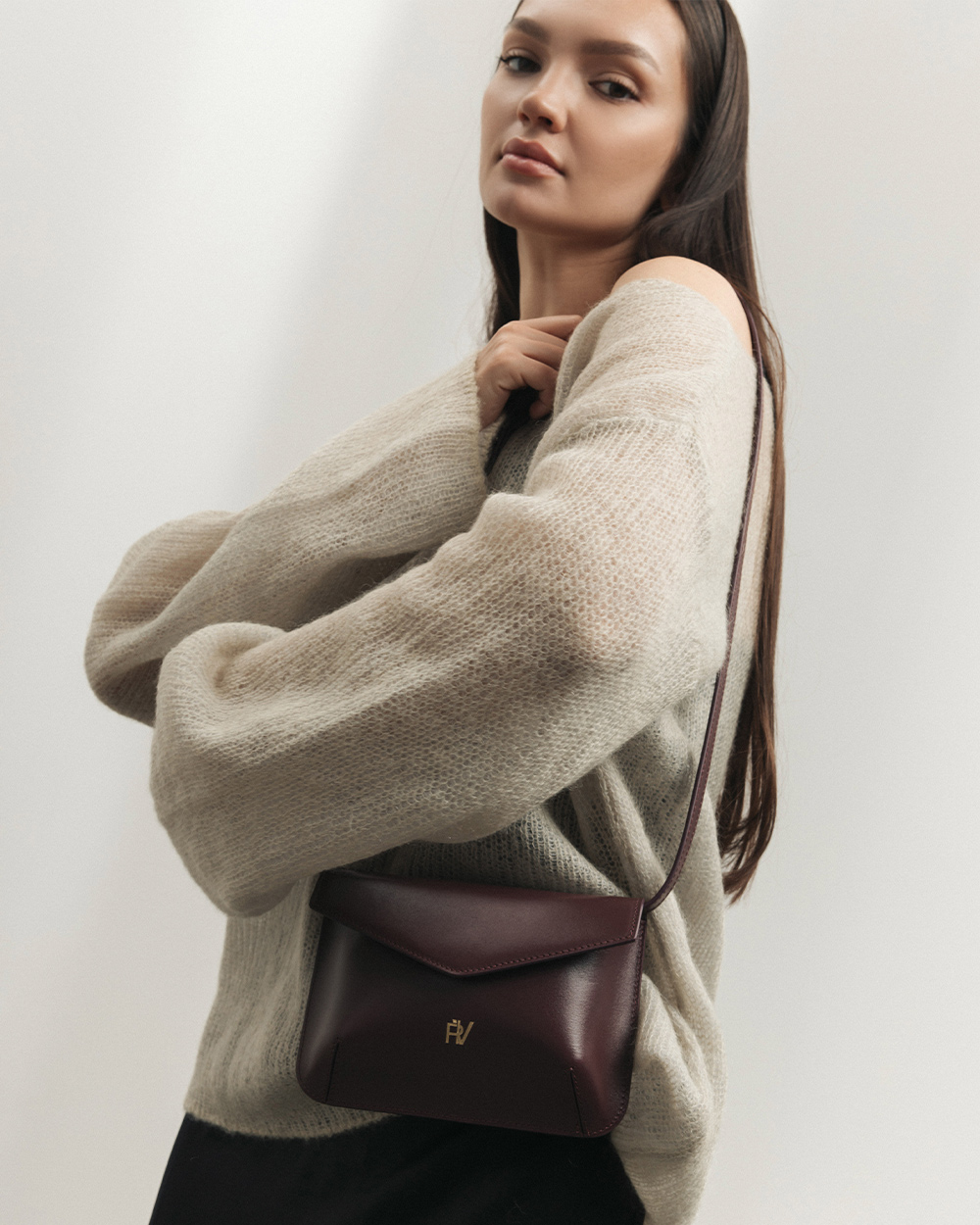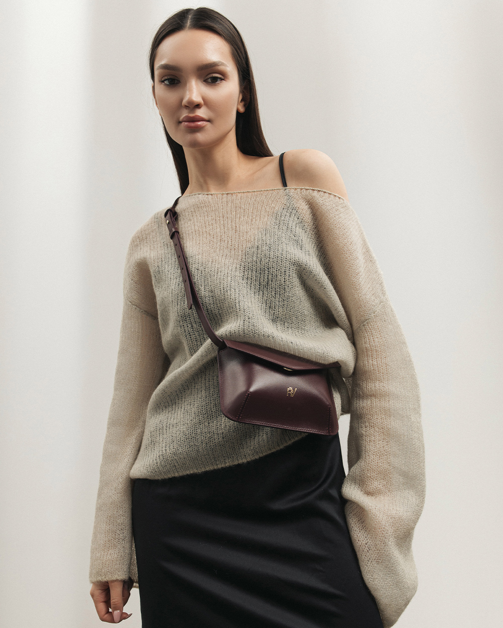 Сумка "Camellia" шкіряна, баклажанова