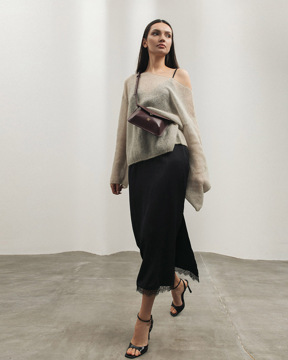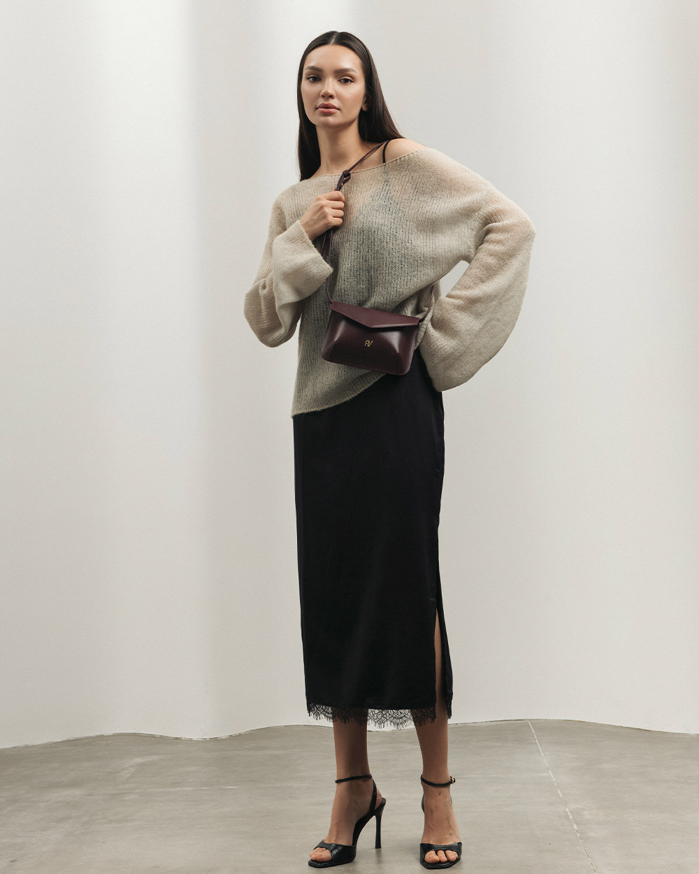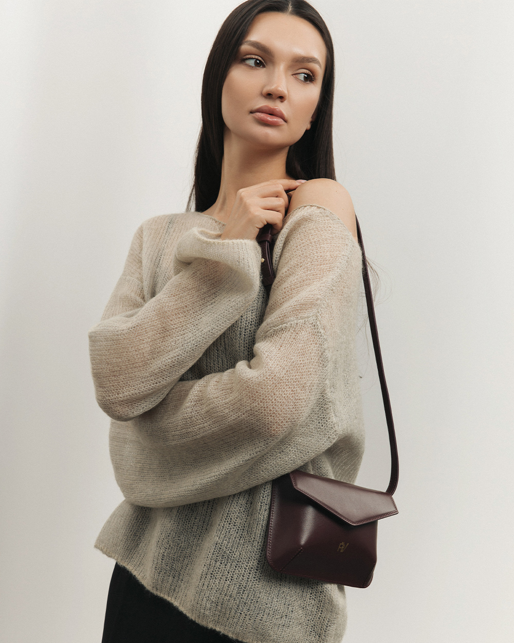 Сумка "Camellia" шкіряна, баклажанова