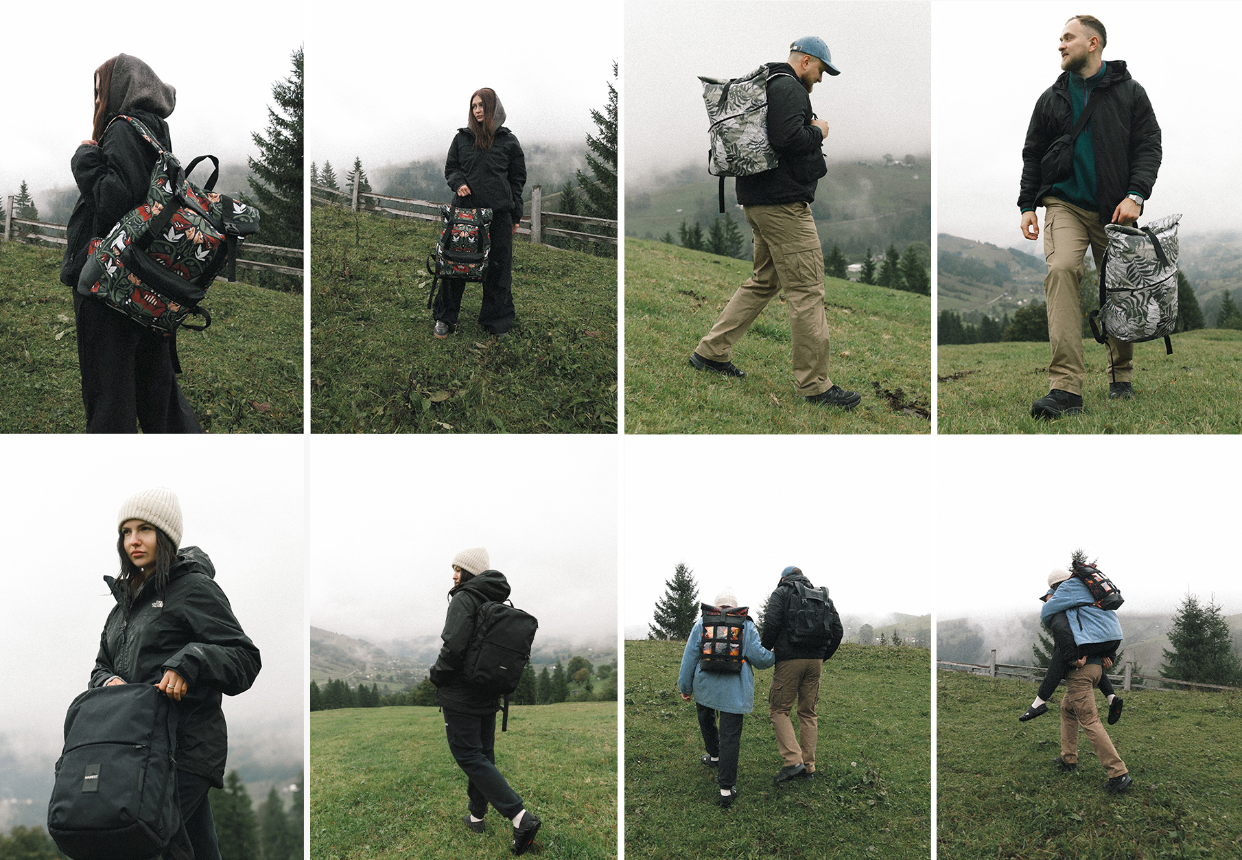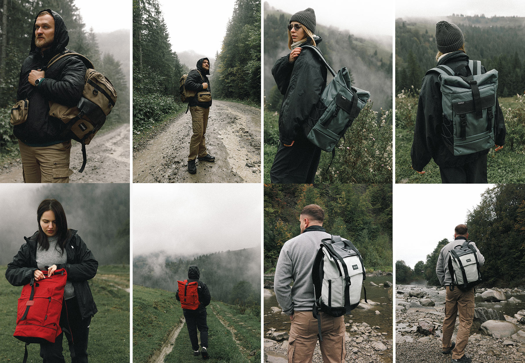 У день зйомки почався дощ і не просто легкий дощик - а справжня карпатська злива. Але ми вирішили не здаватися. Під час зйомки всі вже були мокрі: одяг, штативи, техніка. А от рюкзаки та сумки HARVEST - ні. Все було сухим всередині, ми перевіряли!